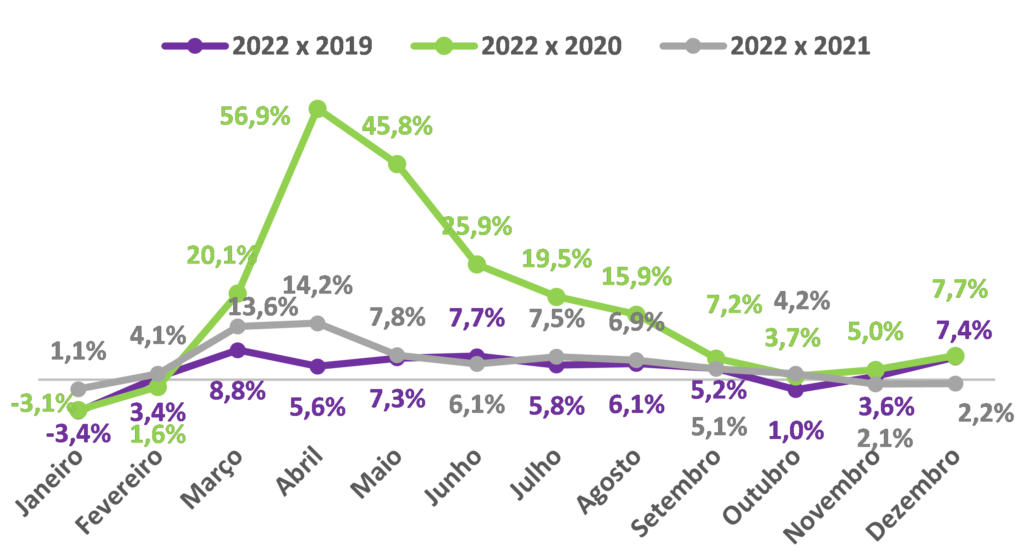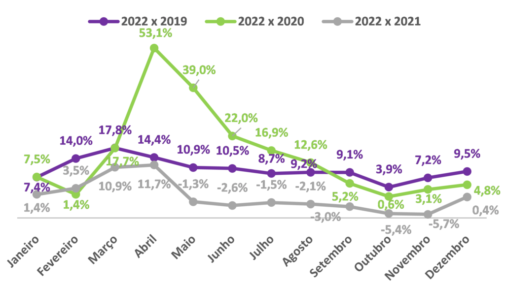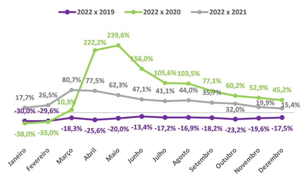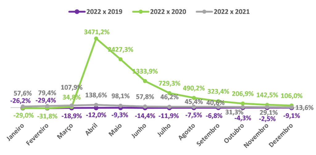Comparações entre 2022 e 2021, 2020 e 2019: